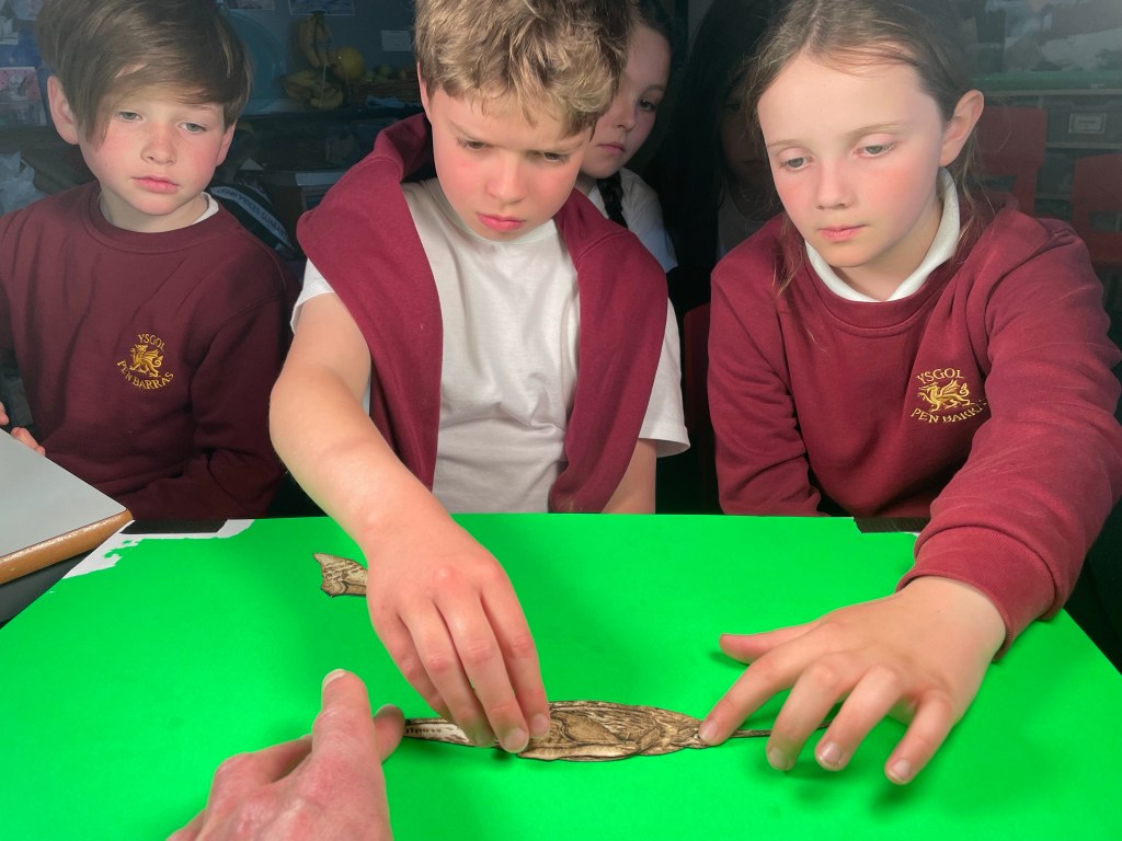 I’m not sure I’ve anything to add to that other than to state that this may be the most important thing I do. And to thank the Arts Council of Wales and Ruthin Craft Centre for providing me with the wherewithal, financial and otherwise, to create the paper cut-outs and the Clwydian Range and Dee Valley AONB Sustainable Development Fund for enabling the ceremony to take place in Ysgol Dyffryn Iâl and Ysgol Pen Barras.