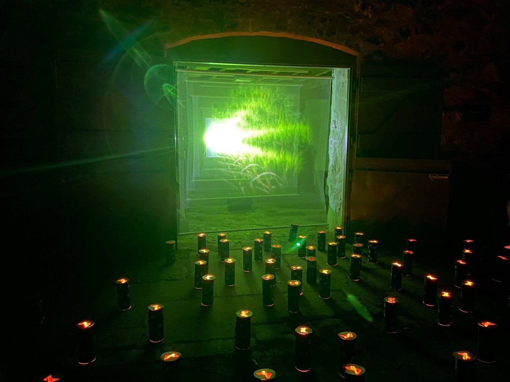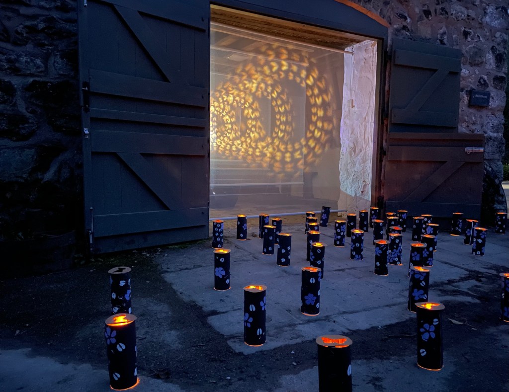 So, chewing possibilities over with Rhiannon Gwyn, who was helping me out with the development of an engagement programme for the residency at the Craft Centre, we came up with the idea of working with local schoolchildren to create many, many lanterns – far more than I could make by myself – to augment the projection. These, through their stencilled iconography, would communicate the symbiotic relationship between small pearl-bordered fritillary, marsh violet and cattle. Like this…