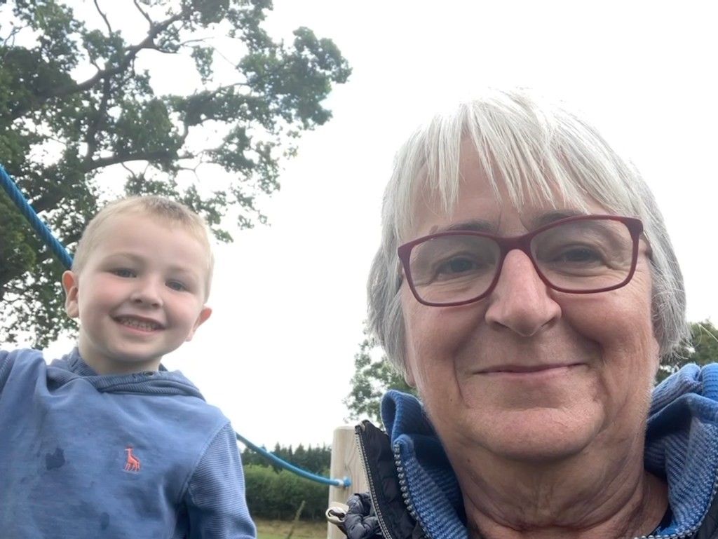 Here she is, being photobombed by her grandson…