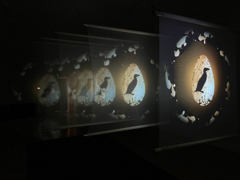 At the opposite pole, supercharged with the intangible qualities absent from Hewitt’s world yet of no material value, are stories – related not just orally but through image, object, song and action. Because of their critical function in maintaining the universal cycles these were – and still are – deemed sufficiently precious to have been passed on through successive generations across millennia; constantly mutating so as to maintain their power within shifting circumstances. In this way, the mythological huia and the great auk, vital components within cultures that sprung from the same landscapes as the birds themselves, are held in memory and are therefore, in a non-biological sense, extant.