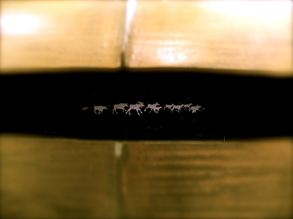 In the course of a residency at Winchester Science Centre, home to the UK’s largest planetarium, I became intrigued by the way that the night sky reflects different culture’s universal views. We see the Plough – whereas in the same collection of glowing dots the Saami see an Elk hunt, the Iroquois a bear hunt and Inuit cultures map the whole collective differently as a herd of caribou ‘Tukturjuit’.