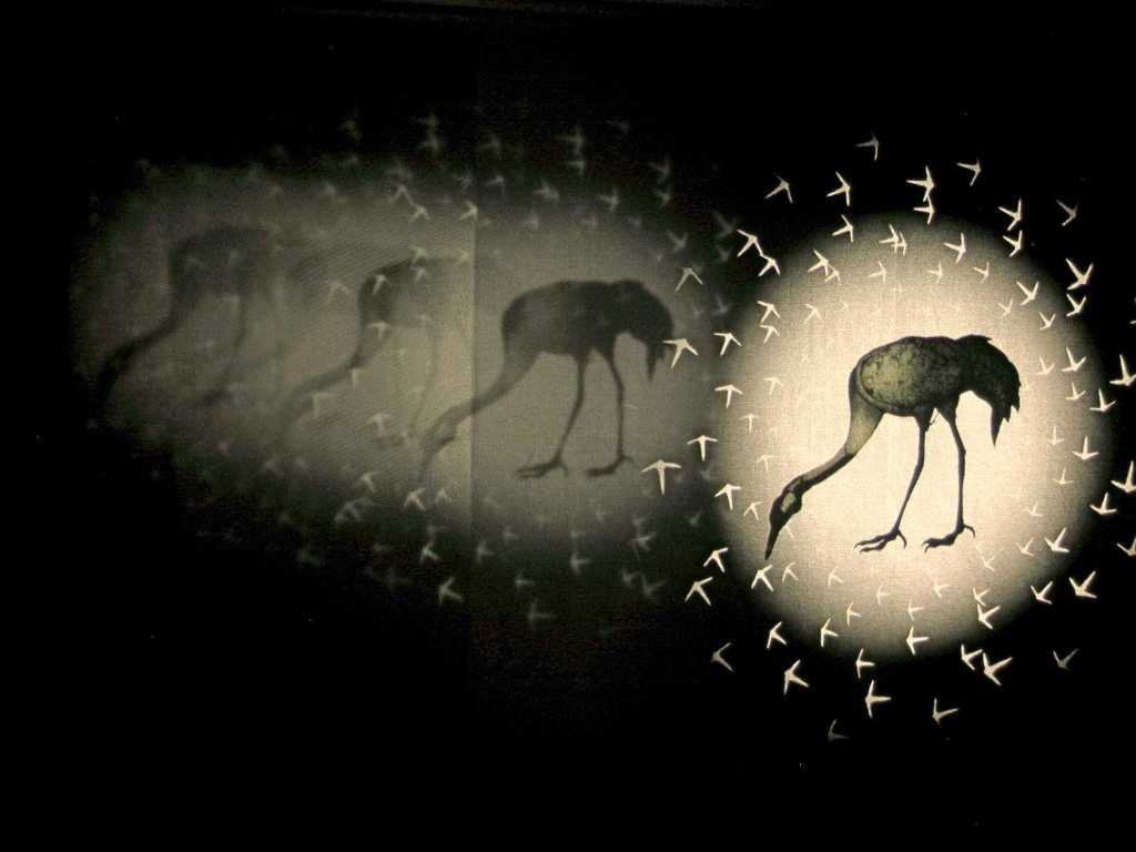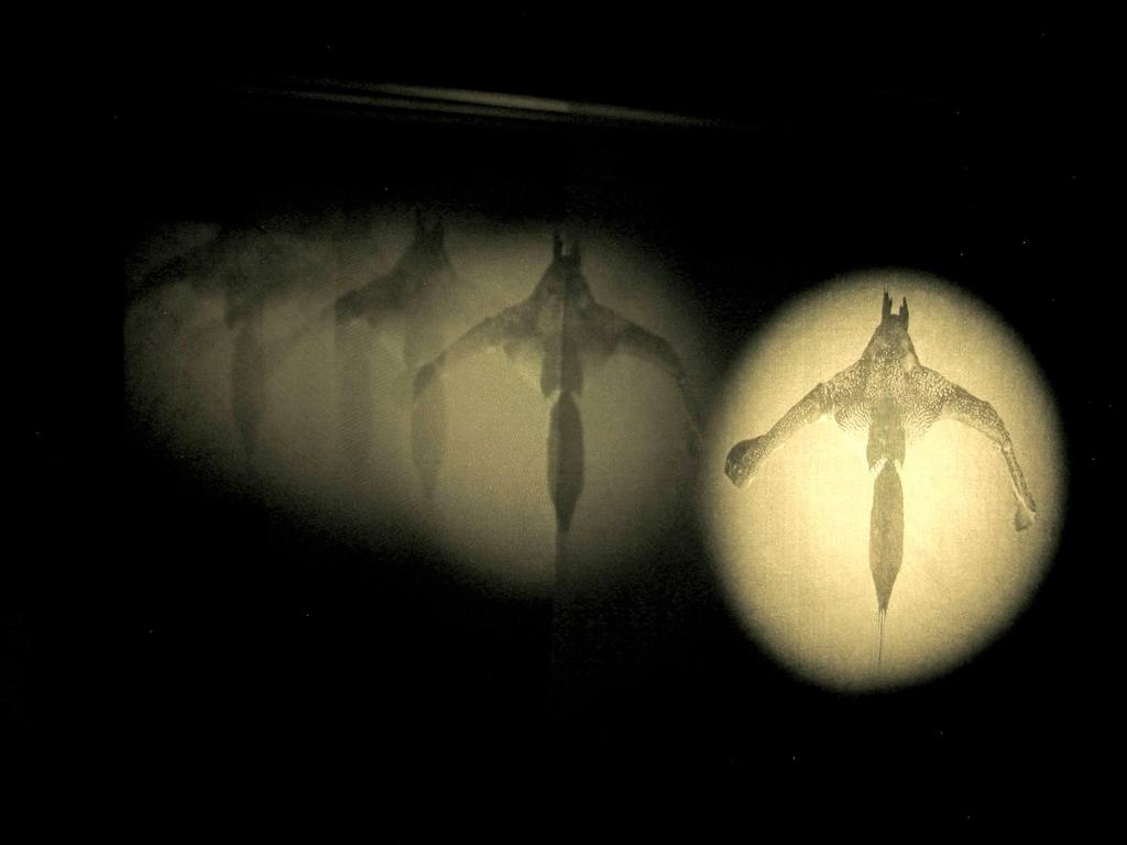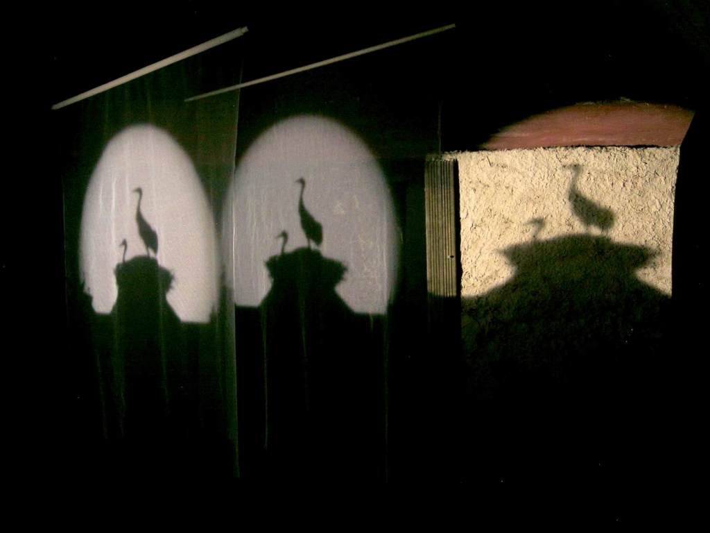 Located here within a piece of experimental archaeology (a reconstructed Romano-British dining hall) the work existed in symbiosis with the surrounding wetlands and their past and present, with visitors able to plunge first into my dream world of a lost and partly re-found avifauna and then into an equally liminal physical space – or vice versa. In this way, one experience nourished the other.