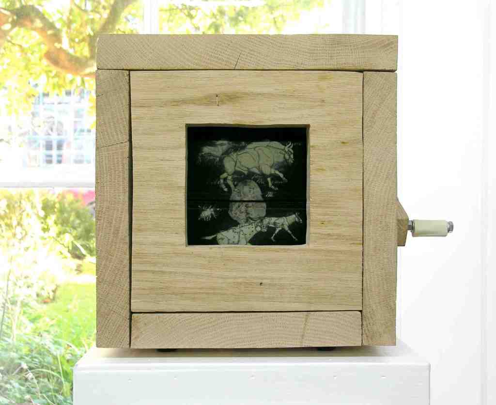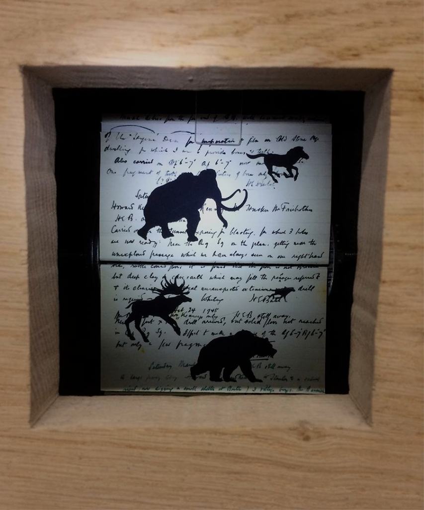 It is an installation formed of twelve hand-cranked ‘flipbook-boxes’, initially a response to the cave palaeontology collections of the Wells and Mendip Museum. However, like so many such collections, these form a portal to a much bigger, interconnected story and thus the piece has expanded accordingly.