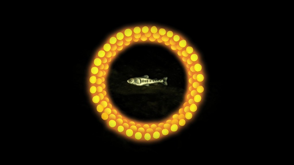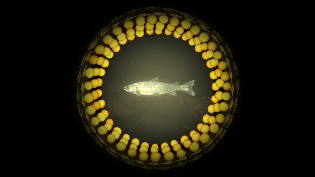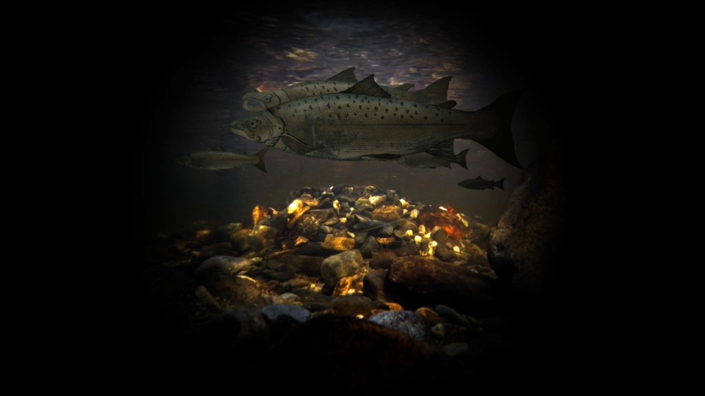 Paper cut-outs in motion; animation stills depicting the life cycle of the salmon